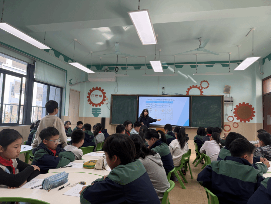 活动中,石芳老师展示《百分数的意义和读写》示范课,以投篮命中率的生活实例为切入点,设计小组竞答、数据统计等趣味环节,引导学生自主探究百分数的含义,掌握读写方法。