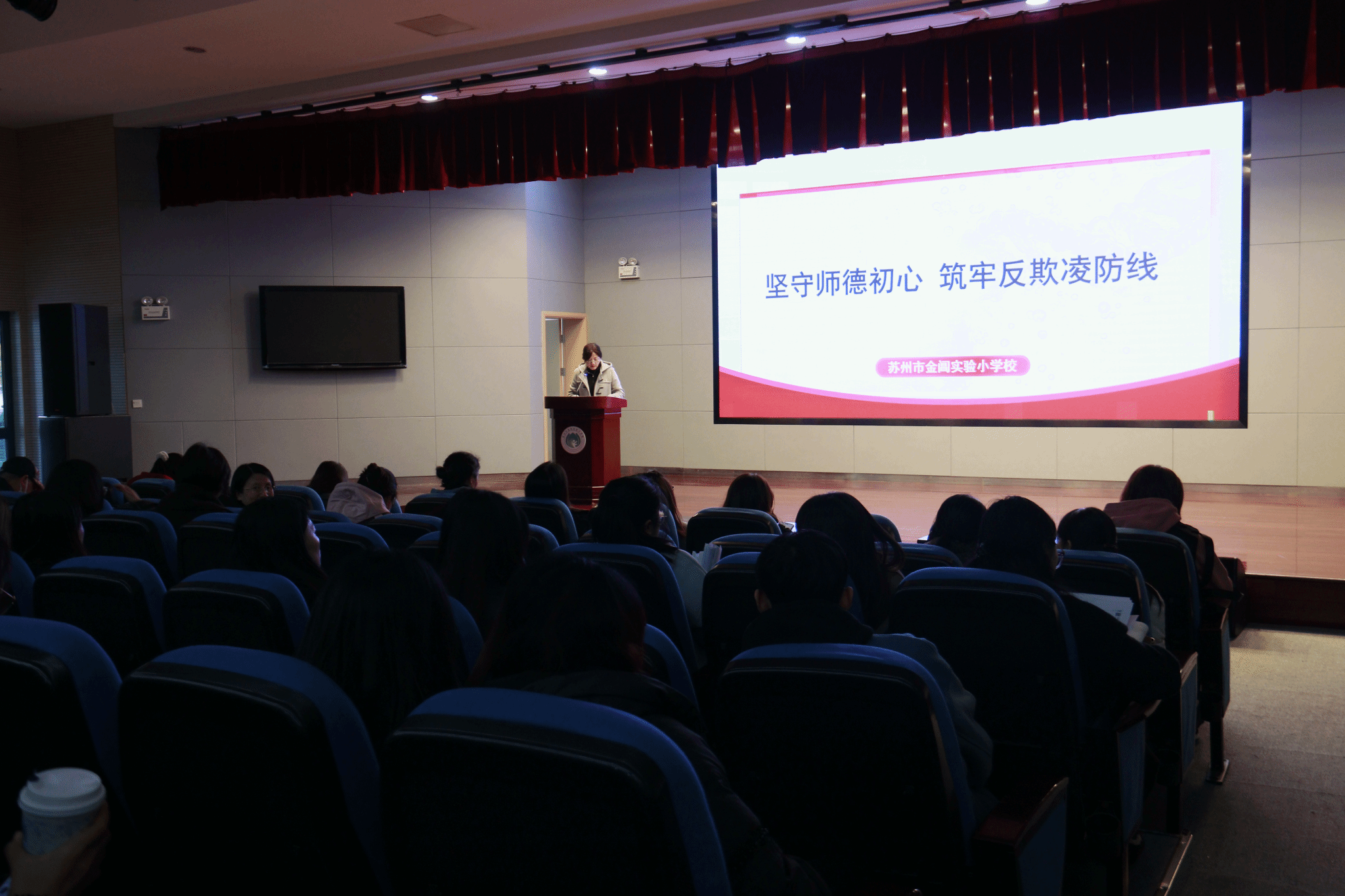 为落实教育部校园欺凌防范治理“十项要求”,强化教师师德担当,近日,金阊实验小学组织开展“坚守师德初心,筑牢反欺凌防线”师德师风专题培训,全体教师参会接受系统学习与工作部署。