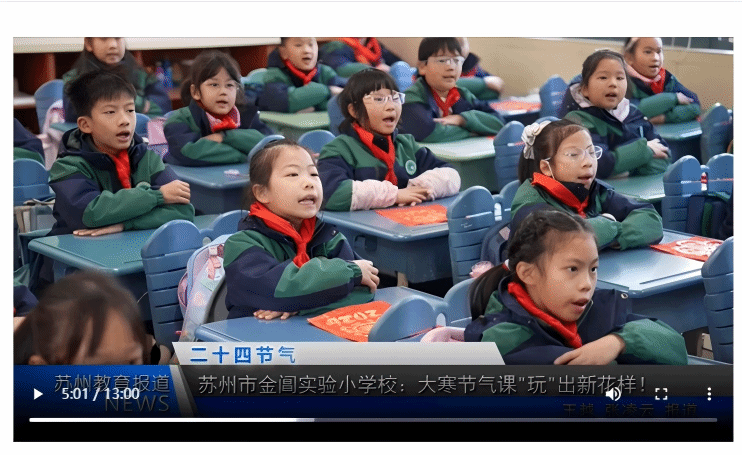 苏州市金阊实验小学校开展节气主题活动。三4中队在教室开展了大寒节气主题活动。队员们品尝了桂圆红枣茶,进行了有趣的剪窗花游戏,同学们对于节气的认识更深刻了。