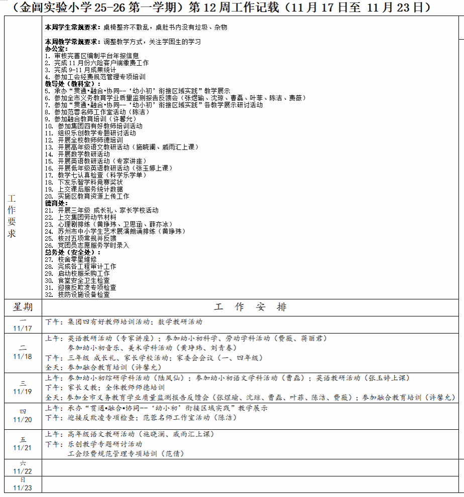 上一条:(金阊实验小学25-26第一学期)第13周工作记载(11月28日至 11月30日) 下一条:苏州市金阊实验小学校项目招标代理机构遴选公告