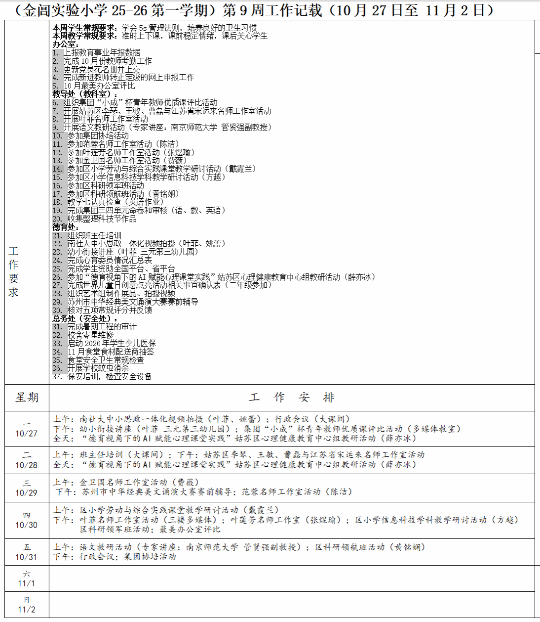 上一条:(金阊实验小学25-26第一学期)第11周工作记载(11月10日至 11月16日) 下一条:(金阊实验小学25-26第一学期)第8周工作记载(10月20日至 10月26日)