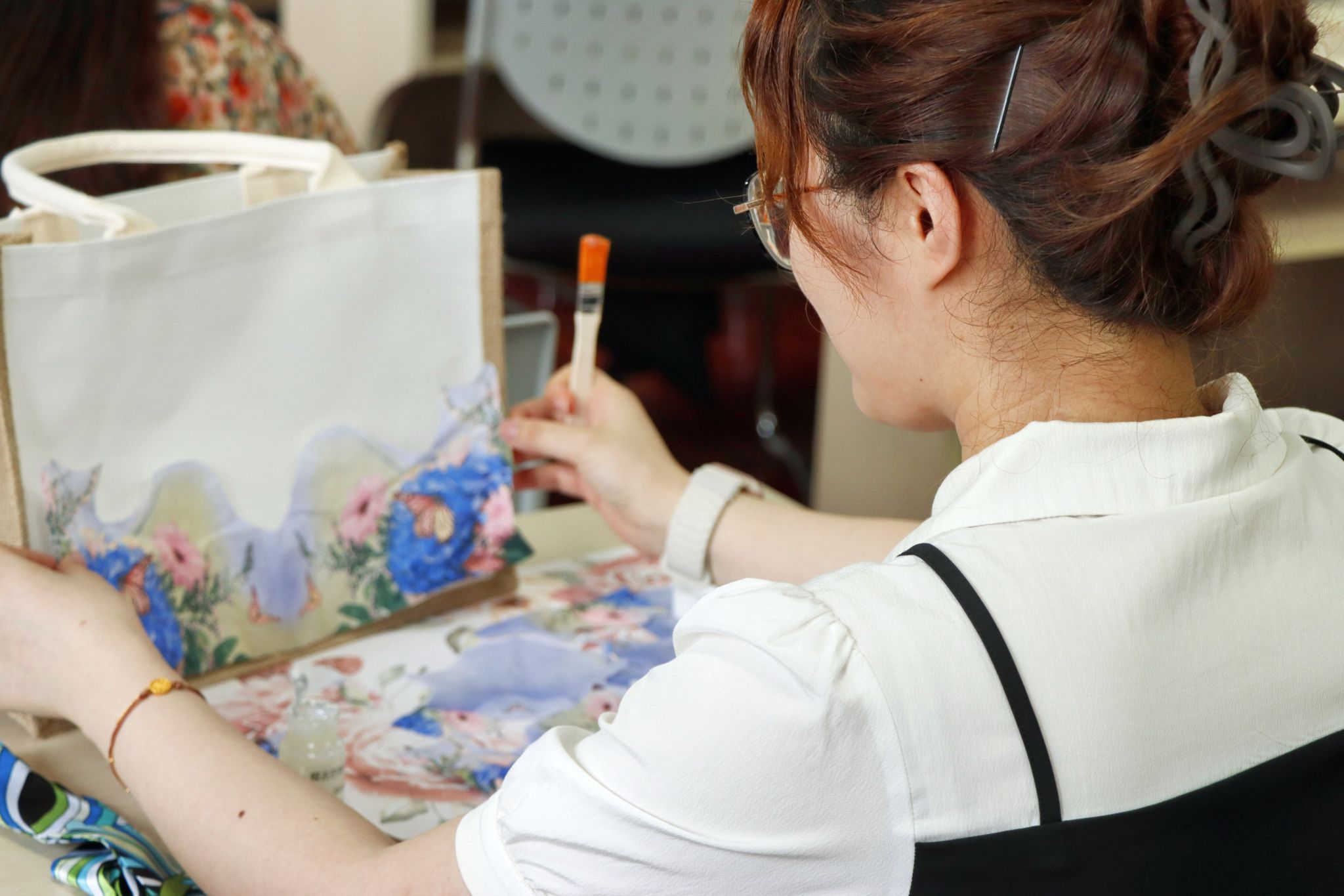 裁一块喜欢的花布,剪一个别致的图案,再细心拼贴、装饰…… 原本朴素的帆布包,在老师们的巧手下,渐渐有了独一无二的模样:有的印着可爱的卡通形象,藏着老师心底的童趣;有的缀着淡雅的花草纹样,透着温柔的教育情怀;还有的写上了 “教育者,渡人亦渡己” 的小句子,满是对这份职业的热爱。