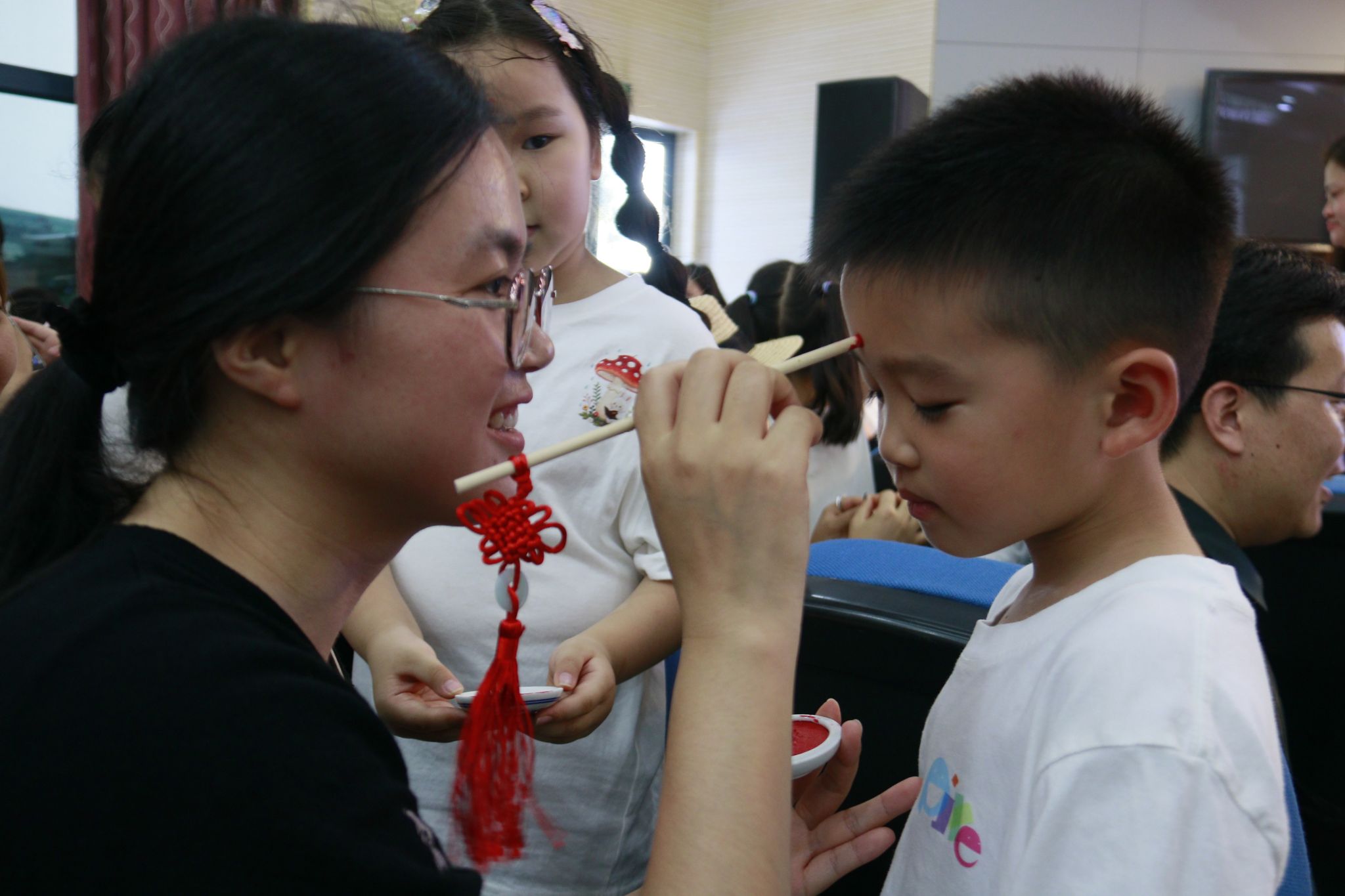 最让人动容的,当属 “朱砂启智” 环节。班主任与科任老师手持朱砂笔,轻轻走到每个孩子面前,在他们眉心点上一颗红痣。“痣” 通 “智”,这一笔不仅是红彤彤的印记,更是 “愿孩子眼明心亮、好读书读好书” 的美好祝福。家长们纷纷定格这一瞬间,镜头里的红痣,成了孩子成长中最特别的符号。