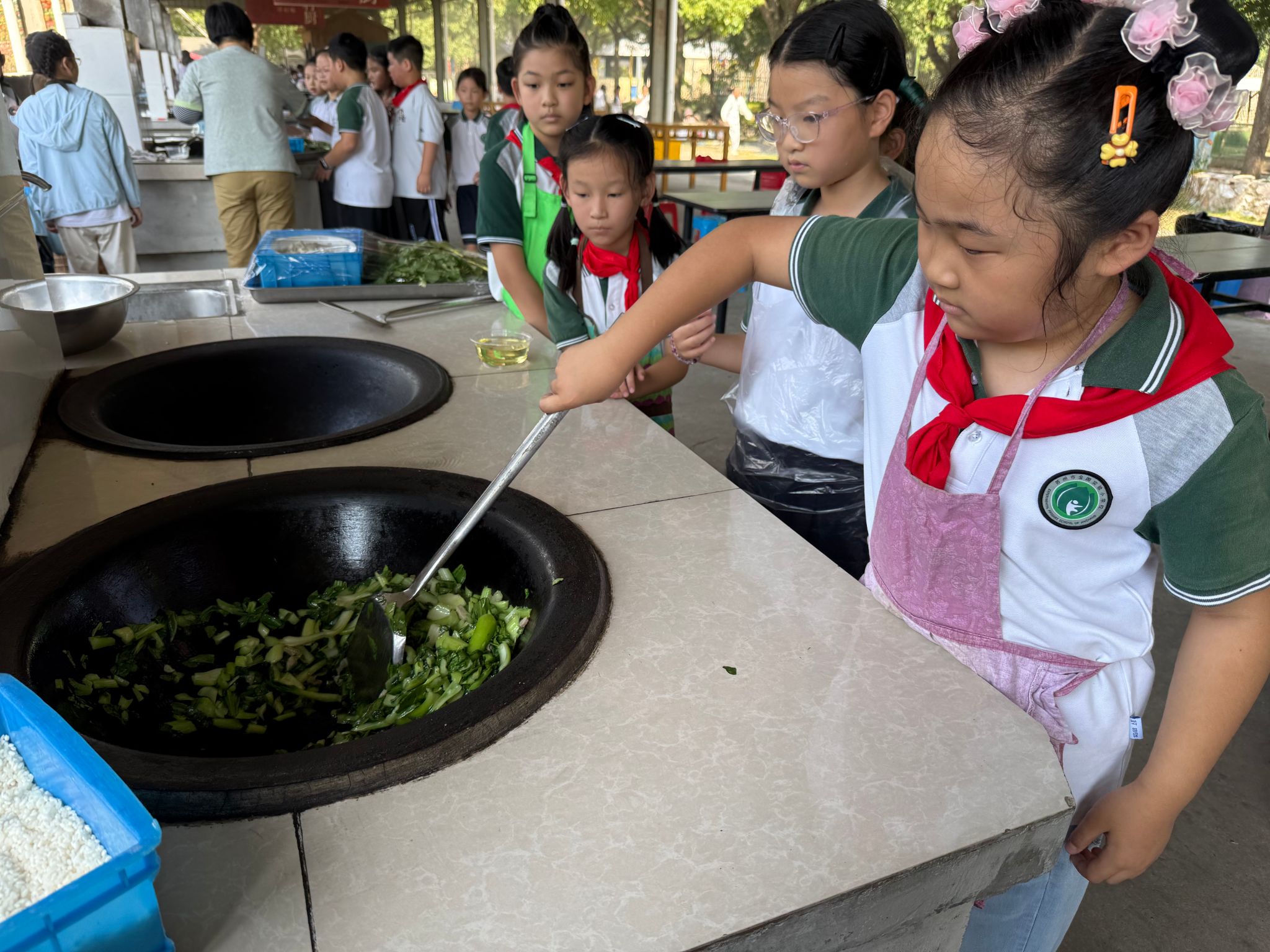老旧的土灶旁飘着柴火的暖香,几个小脑袋凑成一圈,叽叽喳喳像群快乐的小麻雀。有的踮着脚尖,把切得细碎的青菜轻轻往锅里递;有的攥着木铲,学着大人的模样认真搅拌,米粒裹着油花在锅里打转。灶膛里的火苗噼啪作响,映得孩子们的脸蛋红扑扑的,连额角的汗珠都闪着光。终于,土灶菜饭冒着热气出锅了!你给我舀一勺,我帮你添一点,小口小口地吃着,嘴角沾着饭粒也笑得眯起眼。这热热闹闹分享的模样,可不就是 “今日最佳治愈瞬间” 嘛!