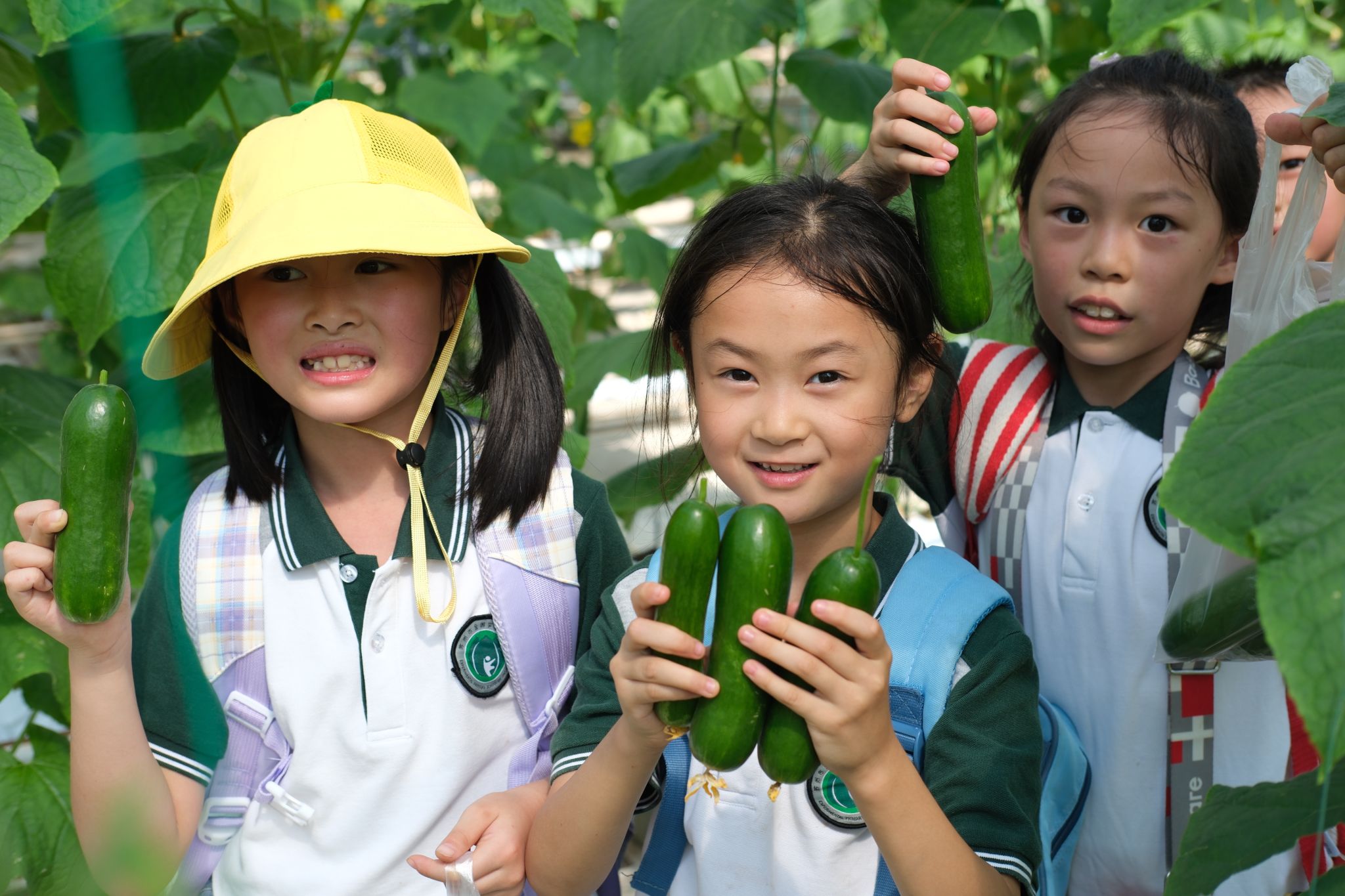 西山开心农场成了低年级小朋友的快乐星球!绿油油的黄瓜挂在藤蔓间,像一个个胖乎乎的绿月牙,有的还顶着嫩黄的小花儿,可爱极了。小朋友们踮着脚尖、小手轻轻扶住瓜身,小心翼翼地顺着藤蔓找连接处,生怕碰坏了这鲜嫩的果实,眼睛亮得像藏了小星星,连 “采摘姿势” 都透着认真劲儿~老师在旁边手把手教 “分辨成熟黄瓜小技巧”:“要看黄瓜表皮的小刺够不够扎手,颜色够不够鲜亮,这样的黄瓜才够脆够甜哟!” 还悄悄科普 “黄瓜为什么带着清香味”,原来它体内藏着特殊的芳香物质,能让人闻着就觉得清爽,平时爱吃的蔬果,果然藏着这么多可爱的小秘密!