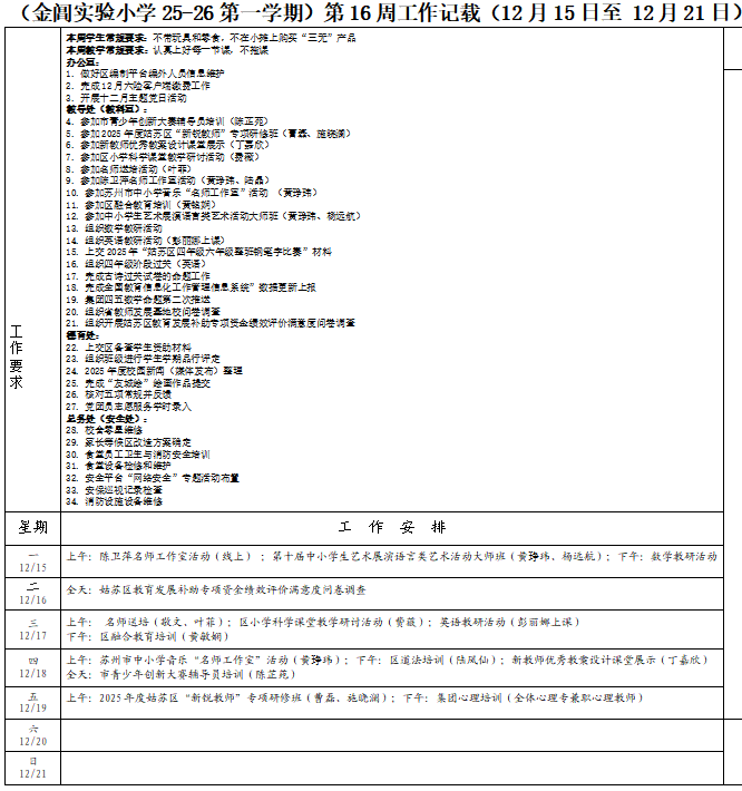 上一条:(金阊实验小学25-26第一学期)第19周工作记载(1月5日至 1月11日) 下一条:(金阊实验小学25-26第一学期)第15周工作记载(12月8日至 12月14日)