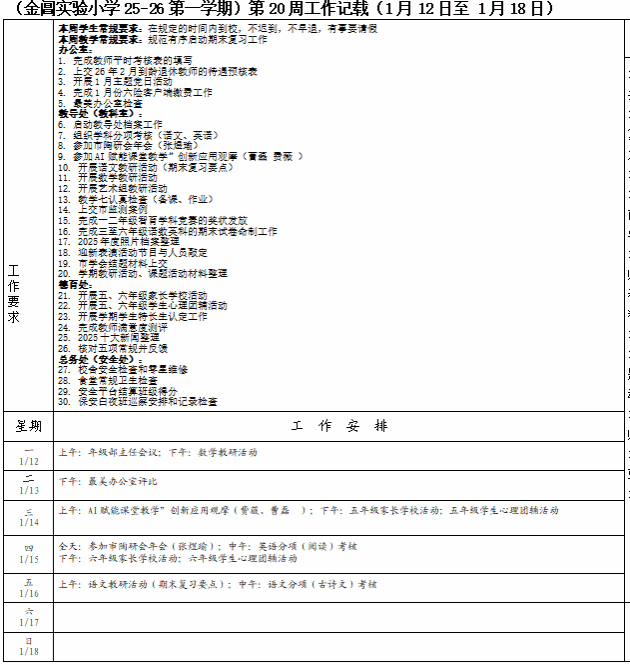 上一条:(金阊实验小学25-26第一学期)第21周工作记载(1月19日至 1月25日) 下一条:(金阊实验小学25-26第一学期)第19周工作记载(1月5日至 1月11日)