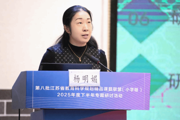 近日,由省教育科学规划领导小组办公室主办的“第八批江苏省教育科学规划精品课题联盟(小学组)2025年度下半年专题研讨活动”在苏州市吴江经济技术开发区江陵实验小学教育集团圆满落幕。当天,金阊实验小学的陈洁老师以“运黄瓜”为主情境,现场展示了《数量关系的分析》一课,带领学生在解决问题的过程中提升数学素养。同时,该校校长杨明媚进行了《小学数学境脉学习的逻辑理路与实践进路》的课题阶段性汇报,详细阐述了研究缘起、已有研究概述、对课题的认识与理解等七个方面,获得与会专家的高度认可。