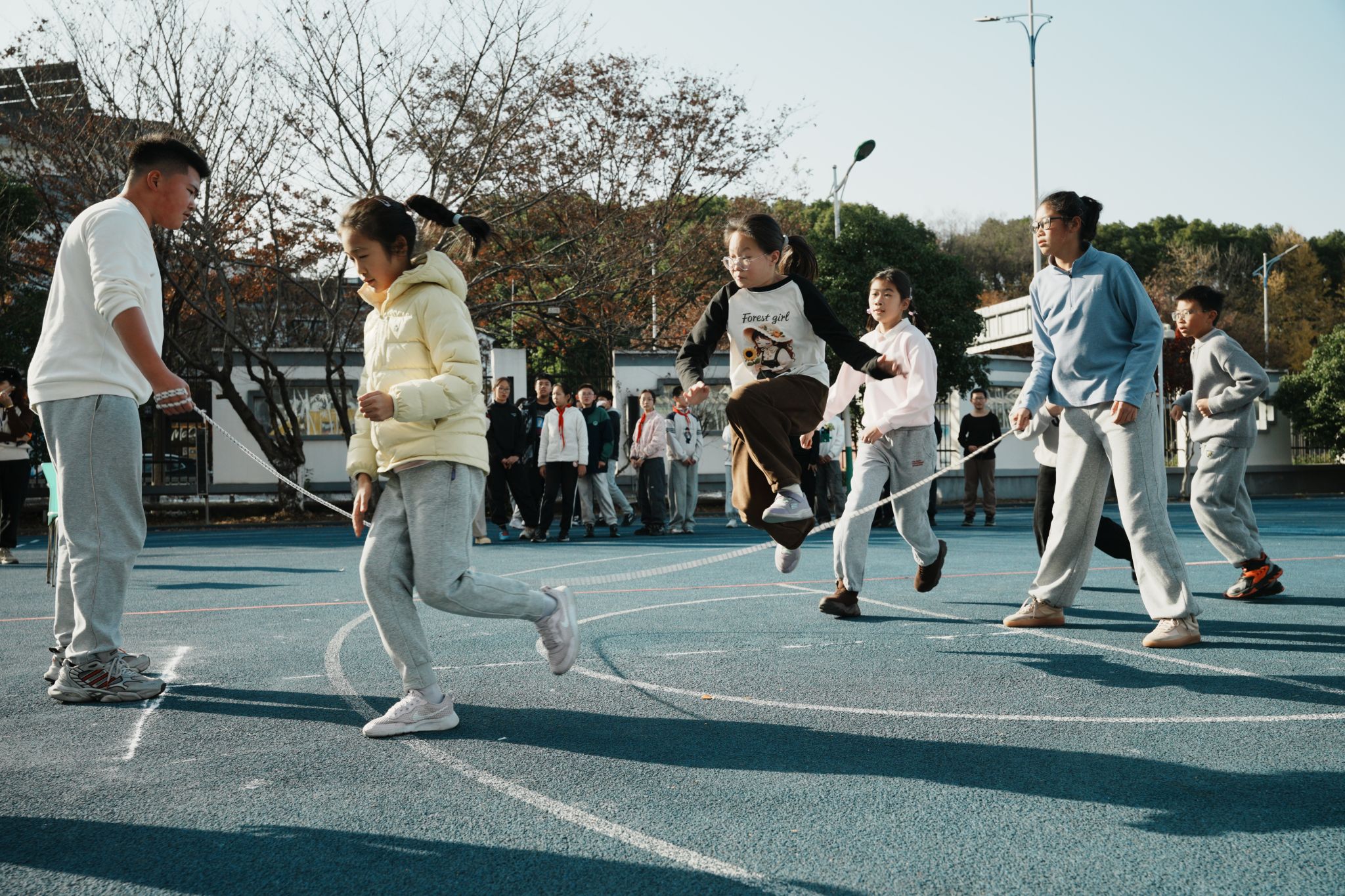 最后,跳绳、踢毽与长绳比赛在不同场地同步开启,全员参与,热情高涨,每个赛场都亮点纷呈!