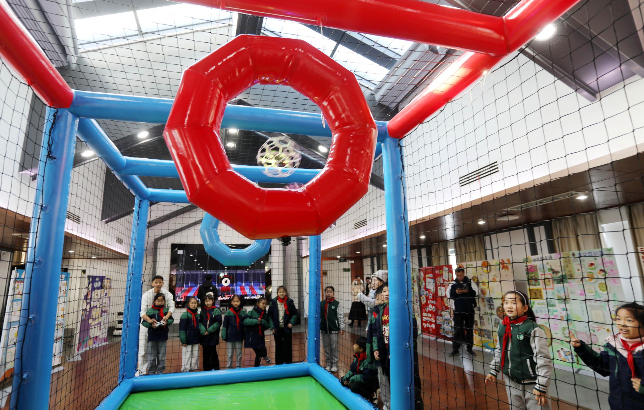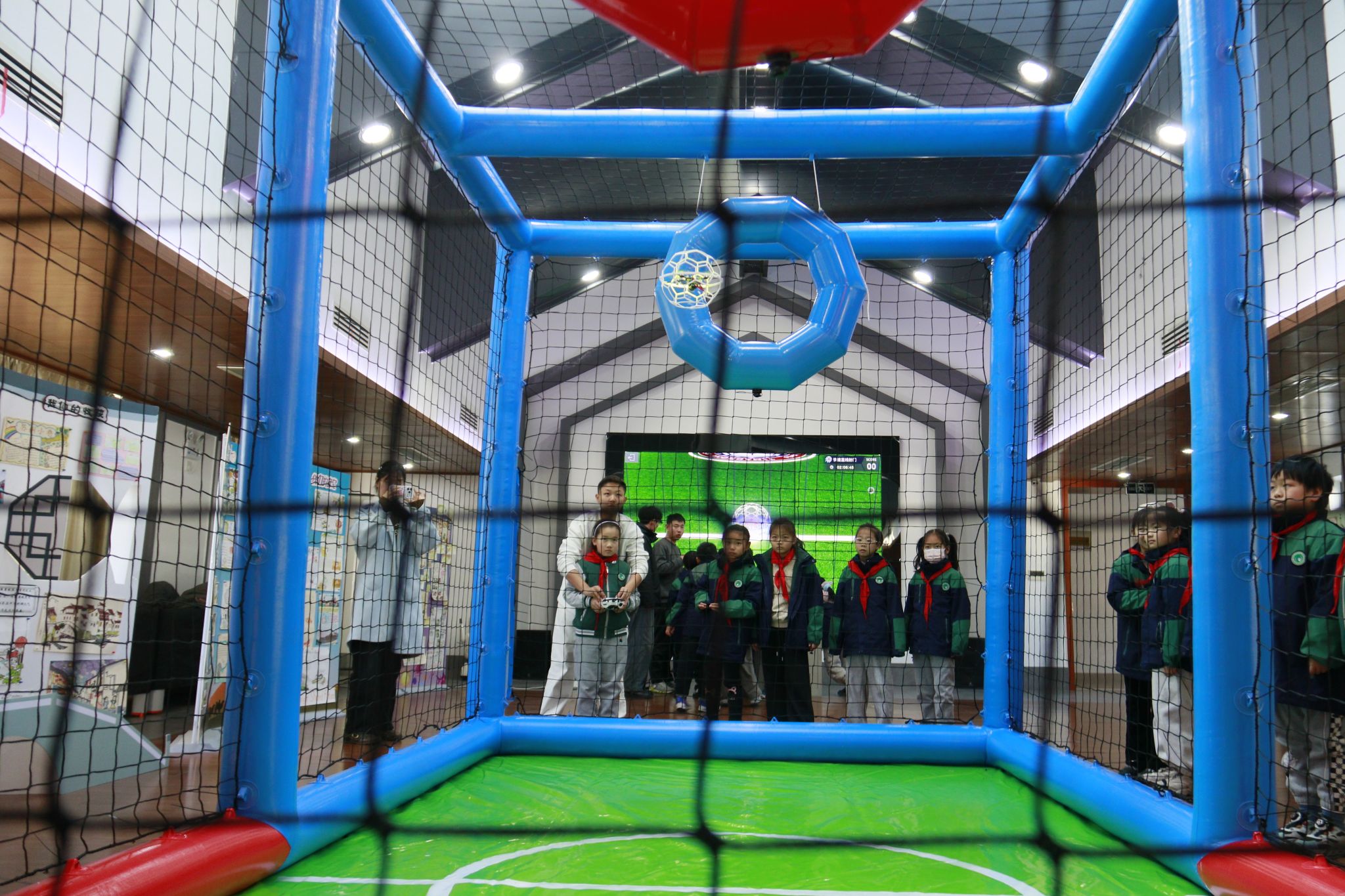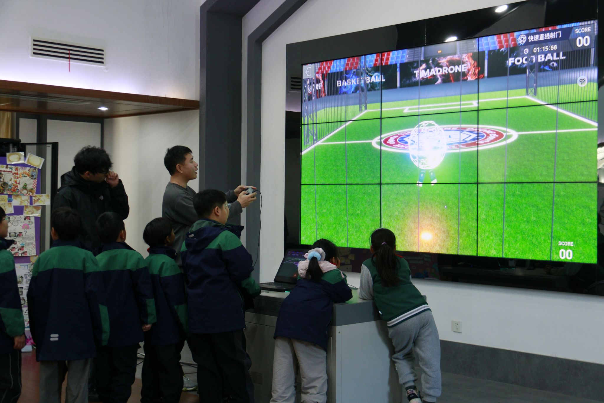 当天的活动还设置了无人机足球项目体验环节。在专业教练的悉心指导下,金阊实小无人机社团成员及学生代表轮流上阵,体验起飞、降落、悬停、射门等基础操作,沉浸式感受科技运动的独特乐趣。“这是我第一次体验无人机足球!和我之前在社团练习的定点飞行、绕杆不同,这个项目加入了对抗元素,感觉更刺激、更好玩了!” 三年级(6)班的杨沁彤在体验后兴奋地分享道。